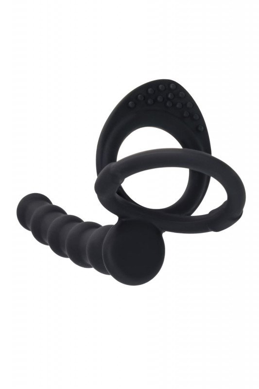 Найменьшее кольцо имеет увеличенную форму сверху и рельеф в виде объемных шариков, которые будут чувственно ласкать клитор партнерше при каждой фрикции