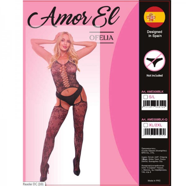 Кетсьют "Amor El Ofelia" имитация топа и чулок, черный, S/L