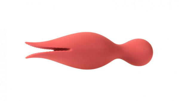 Одна сторона девайса - классический массажер с округлой головкой. Непревзойденная мощность позволяет испытать мощный клиторальный оргазм, буквально через несколько минут после того, как поднесете девайс к клитору! Также, небольшой диаметр девайса позволяет стимулировать преддверие влагалища и все наружные эрогенные зоны!